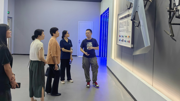 在高巨创新科技开发有限公司工作人员的陪同下,梁红梅和张晓欢参观了企业的展厅,了解了公司的发展历程、产品线和未来规划。同时还参观了公司的办公环境和教育基地。