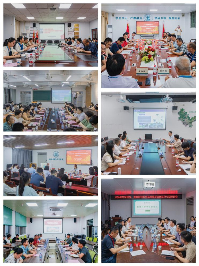 本次座谈会主要围绕弘扬和践行教育家精神、基础教育高质量发展实现路径、“新师范”建设背景下职前教师培养、教育数字化及新时代学校内涵建设与特色发展等五个研讨主题进行座谈交流,对职前师范生培养、职后教师发展与中小学校特色办学建言献策,共商发展。惠州市初中校长任职资格培训班学员结合调研主题进行发言和分享,并与各二级学院师生进行了热烈的讨论与互动交流。
