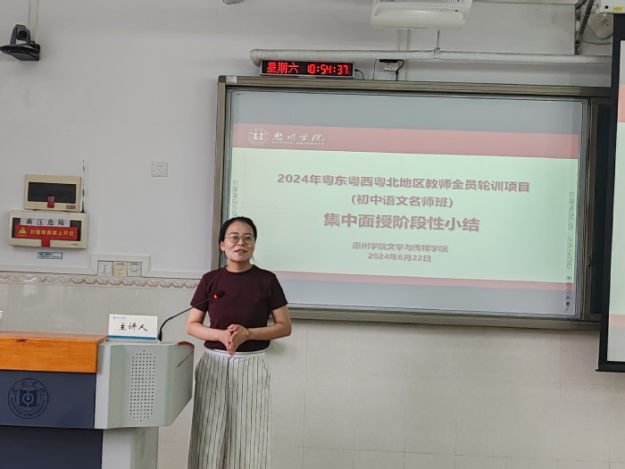 本网讯 6月22日上午,由广东省教育厅主办、惠州学院文学与传媒学院承办的“2024年粤东粤西粤北地区教师全员轮训项目(初中语文名师)培训班”集中面授学习活动在旭日科技大楼圆满落幕。