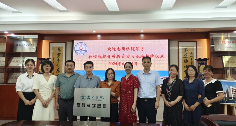 本网讯 6月26日下午,院长陈梦带队赴惠州市第八中学举行实践教学基地授牌仪式。副院长卜凌云、中文系主任冯爱琳以及教务员黄吉群随行参加了活动。惠州市第八中学校长刘学勇、副校长胡世界、教研主任吴金太、副主任盖世光、西藏部主任唐鑫、语文科组长吴小梅、副组长温映香参加了此次活动。