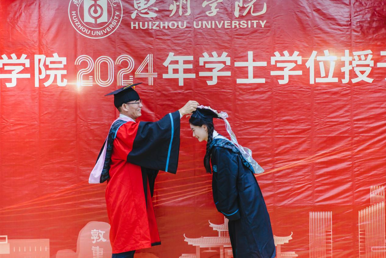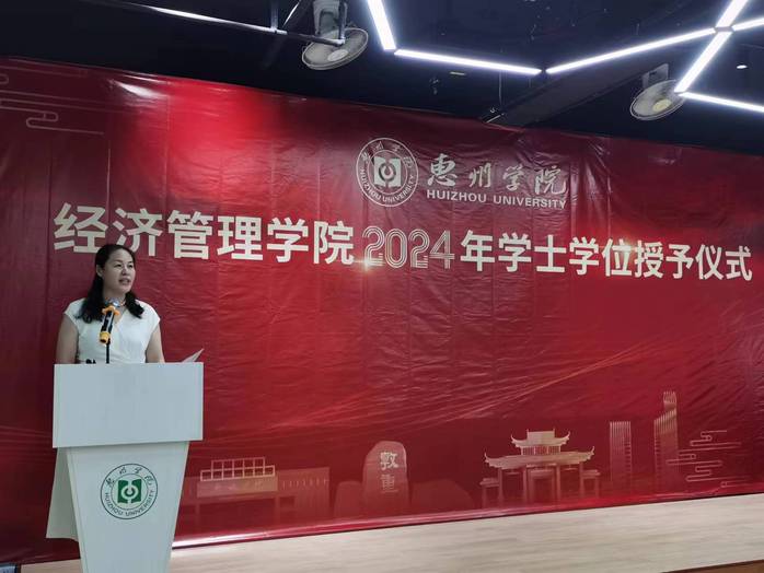 刘春梅宣读《惠州学院关于授予2024届普通高等教育全日制本科毕业生学士学位的决定》,我院刘佳静等396名毕业生获得学士学位。