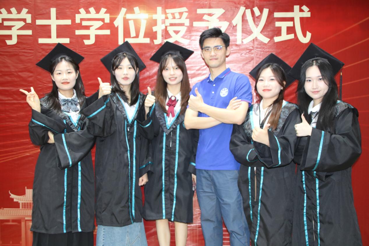 院长李普亮逐一为毕业生代表拨穗并颁发学士学位证书。学士帽上的流苏从右边拨到左边,象征着毕业生们已圆满完成学业,即将踏上崭新的人生旅程。毕业生们与院长合影留念,将青春定格在这一重要时刻。