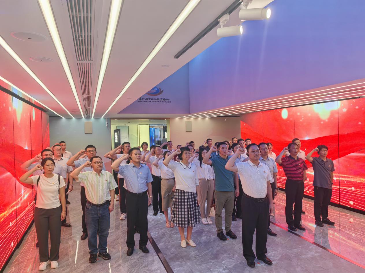 活动当天,党员干部们怀着敬畏之心,整齐有序地进入东江廉洁文化教育基地。在讲解员的引导下,党员干部先后参观了“廉洁之问”“廉洁之源”“廉洁之治”“廉洁之戒”“廉洁之育”“廉洁之道”等6个展厅,深刻回顾党中央全面从严治党取得的历史性成就、发生的历史性变革,接受违纪违法典型案例警示教育,感悟清官廉吏事迹的榜样力量。特别是在观看典型腐败案例时,身临其境的警示教育让全体党员感受深刻。通过学习典型腐败案例、勤廉先进典型和革命先烈英雄事迹,大家表示要以案为鉴、以案促改、以案促治,时刻保持清醒的头脑和坚定的立场,坚决抵制各种诱惑和腐蚀。要不断提高党性修养和廉洁自律意识,以更加饱满的热情和更加务实的作风,以实际行动助力学校各项事业发展。最后,党员干部来到宣誓区,面对鲜红的党旗再次庄严宣誓,重温入党誓词。