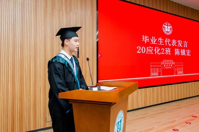 在优秀毕业生代表陈镇宏的发言中,他言辞恳切地表达了对母校的感激之情,回顾了在学院求学的点滴,并对未来充满信心和期待。他表示:“在学院,我们收获了知识,也学会了如何做人。感谢学校为我们提供的广阔平台,让我们能够展现自我,实现自我价值。”他的发言引起了在场毕业生的共鸣。