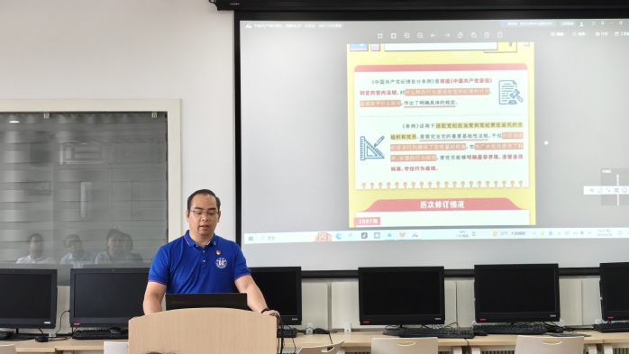 纪检委员黄远清为党员解读新修订的《中国共产党纪律处分条例》,分别从条例的背景与意义,条例的基本内容,违纪行为类型及其认定标准,纪律处分种类及其适用情形,纪律处分程序与要求五个方面进行了深入解读和阐释。宣传委员穆静以党史中四位党员的廉洁故事为典型案例,激励全体党员时刻保持廉洁清正的品行,增强党员领导干部的党性修养和服务意识。