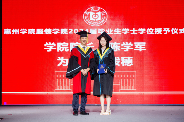 院长陈学军为到场毕业生颁发学位证书,并依次为他们拨穗。拨穗正冠的一瞬间,标志着毕业生们正式获得了学士学位,也象征着他们即将开启新的人生篇章。拨穗的过程中,陈学军鼓励毕业生继续努力,为社会做出更大的贡献。