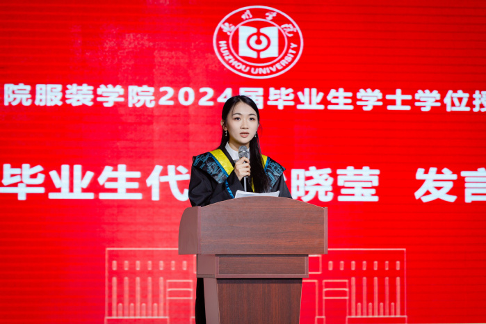 毕业生代表、20服工5班梁晓莹同学发言,她表达了对母校的感激之情,并分享了在校期间的成长经历和收获,表示将牢记母校的教诲,继续努力拼搏,实现人生目标。