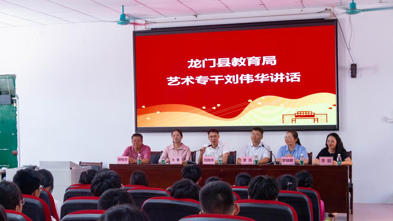 会上,龙门县教育局艺术专干刘伟华代表龙门县教育局讲话。他强调了团队合作能力和美育对学生成长的重要性,并对惠州学院给与龙门县乡村学校的美育帮扶表示深深的感谢。他表示,此次美育浸润夏令营不仅是一个学习的平台,更是一个激发学生创造力、想象力的舞台,希望龙门平陵中学的同学们能够珍惜这次难得的机会,努力提升自己的艺术素养。