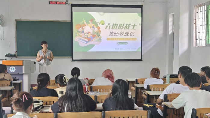 胡文君老师从“一辈子做老师,一辈子学做老师”引入本次讲座的主题。她介绍道,“六边形战士”教师不一定是具有多方面天赋的教师,而是能不断挖掘自身潜力,有着强大无穷的力量,可以在教育和教学领域创造无限可能性的教师,有着变化、创新、突破的教师。