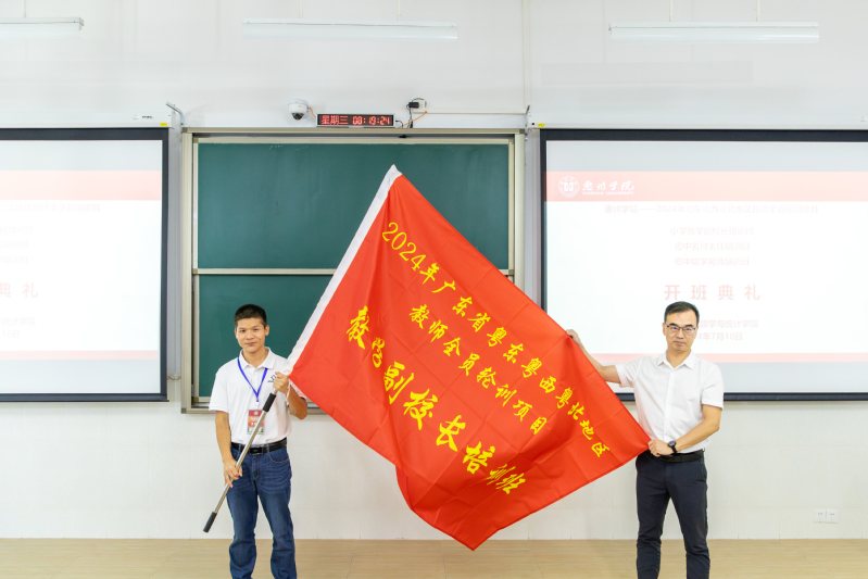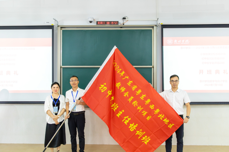 本网讯 7月10日上午,由广东省教育厅主办、惠州学院承办的2024年粤东粤西粤北地区教师全员轮训项目小学教学副校长培训班、初中名班主任培训班和初中数学名师培训班开班典礼在科技楼B307举行。继续教育学院副院长邓伟浩,数学与统计学院领导班子成员、项目管理团队全体老师及本轮三个培训班全体学员参加了典礼。开班典礼由副院长王海青主持。