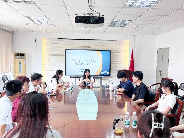 本网讯 9月13日,我院在服装楼310会议室举办优秀校友经验分享交流会暨2024级新生学习经验交流会。本次座谈会邀请了学院2021届杰出校友、全国技术能手叶诗婷返校,与在校师生共聚一堂,分享她的学习心得和职业经历。院党委书记张小琨、党委副书记李少璃、专任教师韩建林和陈媛老师、辅导员彭敏珊老师以及各年级学生代表出席会议。