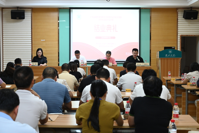 本网讯 2024年9月27日,由我院承办的2024年广东省粤东西北地区教师全员轮训项目(初中年级级长培训班)线下培训结业仪式在继续教育学院一楼培训室举行。院党委书记邓育明、副院长朱云、班主任刘琼、副班主任刘文静、学生助理及全体培训班学员参加了此次活动,结业仪式由辅导员赖成业主持。