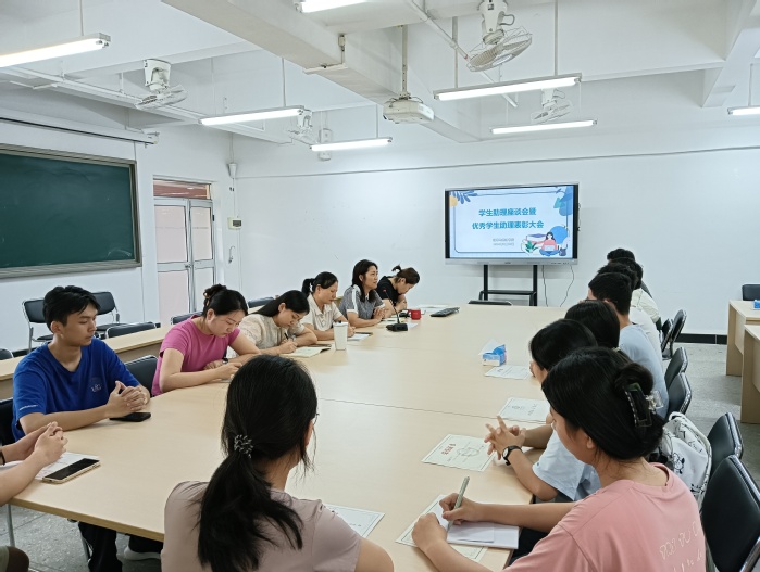 本网讯 为充分发挥勤工助学育人功能,促进学生助理的工作交流和实践能力提升,我院于9月27日在旭日楼328会议室召开新学期学生助理座谈会暨勤工助学先进个人表彰会。院党委副书记陈海容、教师代表、全体辅导员、全体学生助理参加了座谈会。会议由辅导员丛珊老师主持。