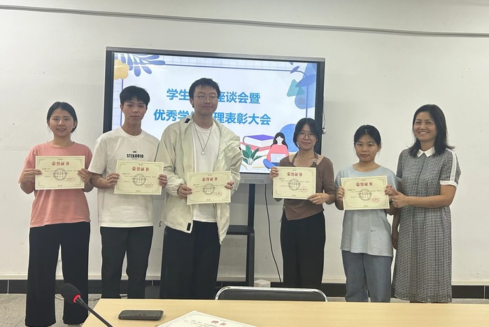 会上表彰了上学年工作表现突出,学习成绩良好的勤工助学学生助理,授于官美帆等五名同学学院勤工助学“先进个人”称号。为新学年学生助理颁发了聘书。