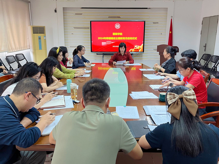近日,服装学院在服装楼310会议室举行了2024年师德建设主题教育月活动的启动仪式。启动仪式上,院党委书记张小琨首先传达了习近平总书记关于教育的重要论述和对教师队伍建设改革的系列重要指示批示精神,强调师德师风建设是教师队伍建设的首要任务,是提升教育质量、培养德智体美劳全面发展的社会主义建设者和接班人的重要保障。张小琨带领全体教师深入学习了习近平新时代中国特色社会主义思想,要求广大教师坚持以这一思想培根铸魂,不断提升自身的思想政治素质和职业道德水平。她指出,作为教师,要时刻铭记“立德树人”的根本任务,以身作则,做学生健康成长的指导者和引路人。