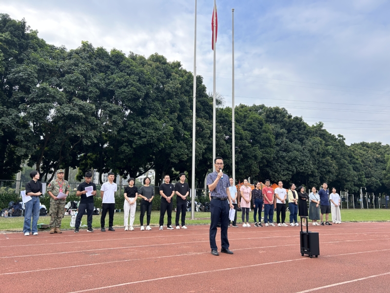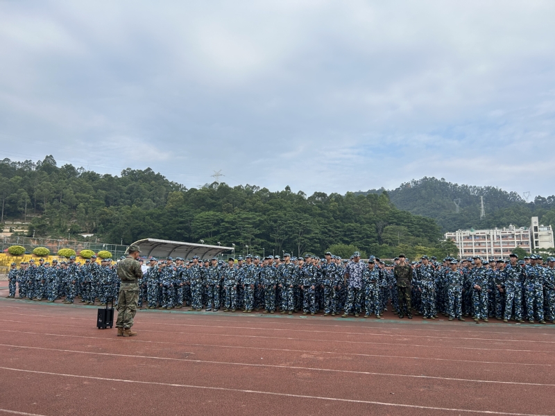 谭润志宣布开训。教官和2024级新同学们在激昂的军歌中有序开训。