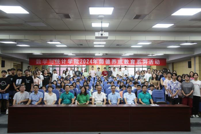 本网讯 2024年10月16日下午,我院在图书馆学术报告厅举办师德师风建设主题教育月暨师范生师德养成教育系列活动专题讲座,讲座由学校关工委副主任、教学督导组组长潘庆年教授主讲,学院领导、青年教师、22级全体师范生以及数学卓越班学员到场聆听,院党委书记林少章主持讲座。