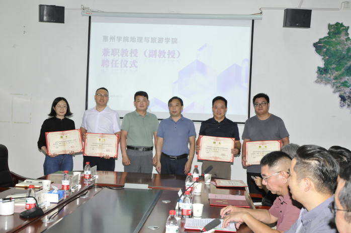 本网讯 近日,地理与旅游学院于科技楼B座1409举行校外专家兼职教授(副教授)聘任仪式。地理信息科学专业教授(副教授)张汉中、唐华林,地理科学专业教授(副教授)韩涛、彭军,旅游管理专业教授(副教授)杨哲钧、陈燕深、许文超等15位专家代表,地旅学院党委书记李富明,院长戴学军,副院长吴鹏豹、蒋宝林,三位教学系系主任以及学生代表出席会议。会议由蒋宝林主持。