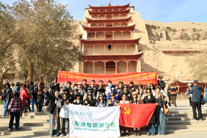 本网讯 10月17日,我院2022级旅游管理专业学生在甘肃的野外综合实习途中,在敦煌莫高窟开展了一场旨在探索传统文化遗产保护与传承的考察活动。在这片古老而神秘的土地上,学生们不仅亲身感受到了莫高窟的无穷魅力,更深刻体会到了文物流失带来的历史教训以及文物保护的紧迫性。
