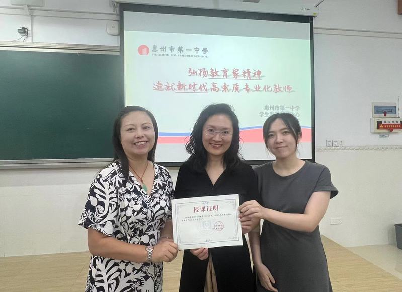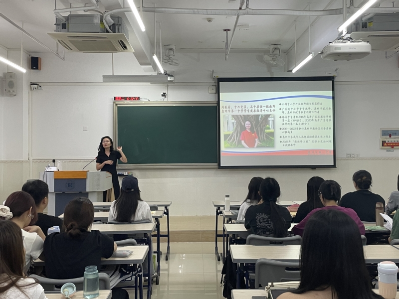 本网讯 10月22日下午,惠州市第一中学教师发展中心主任、中学英语高级教师刘筱荷受邀来到我院,为学生们开展了一场主题为“弘扬教育家精神,培养新时代高素质专业化教师”的讲座,22级英语英语师范生积极参与。