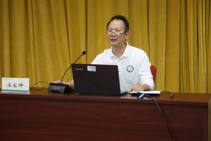 庄容坤教授以“积微小,至宏大”为主题,结合师范专业认证理念,向同学们解读了“一践行三学会”的内涵,从师范生的毕业要求和培养目标为主线,向同学们分享了如何践行师德,涵养师德情操。从品德修养、学习、生活、工作等给同学们提了“八条建议”,鼓励在场的师范生在未来的职业生涯中要做到爱岗敬业,热爱教师职业,发扬学院院训精神,一步一个脚印,从微小的事情做起,勇于行动、不断积累,脚踏实地履行教师职责。同时要加强锻炼,造就好身体,加入好团队,不断提升自己的能力与师德,实现人生价值。