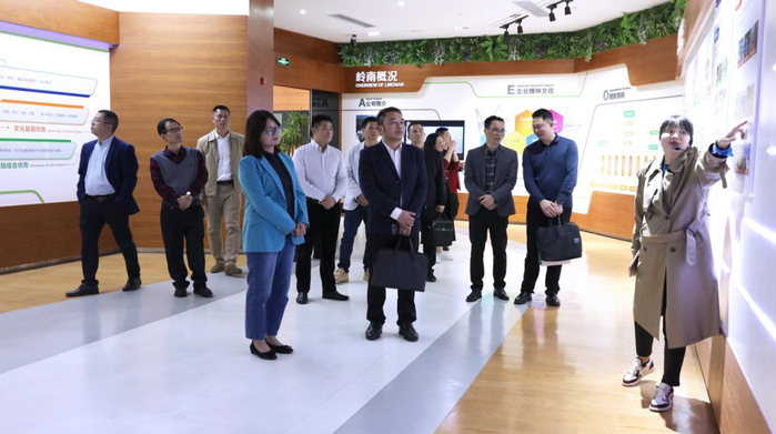 车小真一行在我校85届校友、岭南生态文旅股份有限公司联席董事长兼总裁尹洪卫的陪同下参观了公司成果展厅,深入了解岭南股份“生态+文旅”的战略发展方向,对其在助力乡村振兴、百千万工程中作出的贡献表示肯定。座谈会上,尹洪卫对母校的培养表示感谢,并分享了个人的成长历程,表示未来将持续关注和支持母校发展,为在校学生提供更多的帮助与指导,促进学校与校友的共同发展。