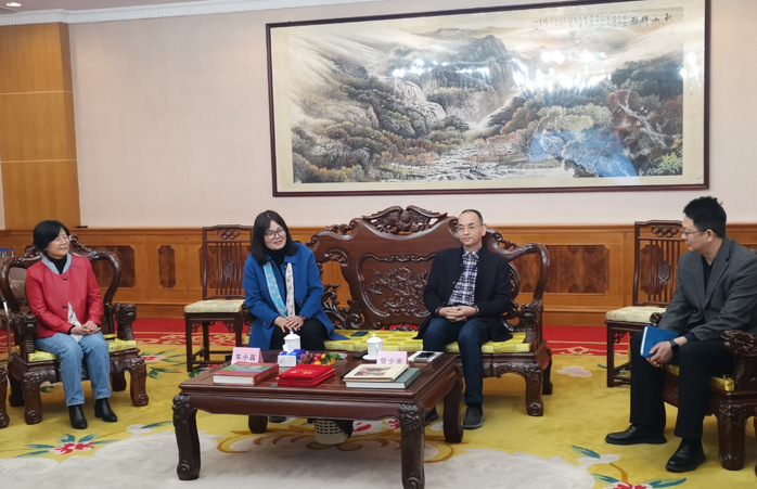 车小真介绍了学校的历史沿革、学科建设、人才培养模式以及近年来我校在教学科研、社会服务等方面取得的成就,并听取校友对我校人才培养工作的建议。她指出,要进一步加强与校友单位的沟通合作,不断优化我校人才培养方案,提升学生的实践能力和创新思维,增强人才培养的针对性和实效性,建立完善招生—培养—就业联动机制。双方期待在人才联合培养、共建实习基地以及实践教学等方面建立稳定的合作关系。