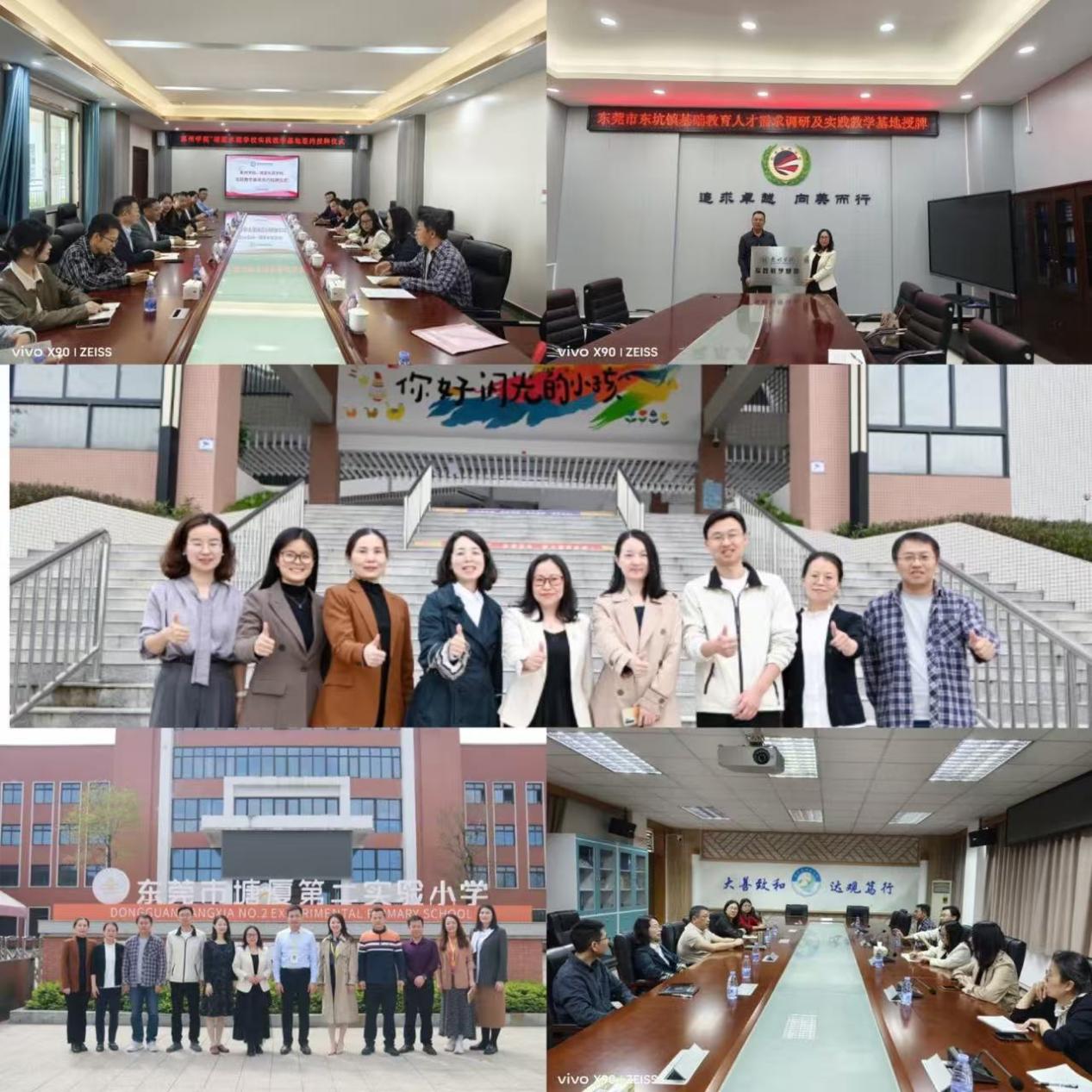 随后,陈梦一行实地走访了塘厦第二实验小学、塘厦水霖学校、松实附小、东坑镇群英小学、东坑镇第三小学、东晋实验学校等6家单位。调研期间,学院与塘厦水霖学校、东晋实验学校正式签订了教学实践基地协议,并举行了授牌仪式。双方就实践基地建设达成共识,积极探索“师资互聘、岗位互换、资源共享、合作共赢”的新型合作模式,对未来深度合作充满期待。