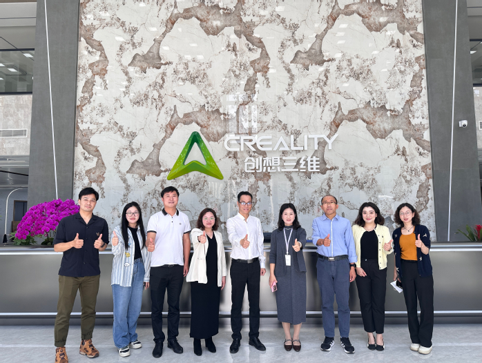 在惠州市创想三维科技有限公司经理王霞兵的陪同下,学院一行参观了公司3D打印技术应用展厅,详细了解了3D打印技术的最新发展与应用场景。