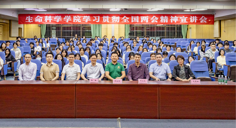 本网讯 为深入学习贯彻2025年全国两会精神,充分发挥优秀校友的示范引领作用,生命科学学院于4月11日晚举办专题宣讲会,邀请全国人大代表、阳春市中雁生态农业有限公司总经理、2010届生物技术专业校友谢汝朋作主题报告。学院党政领导班子、教师代表、校友代表及2023级全体学生共300余人参会,会议由党委书记杨敏主持。