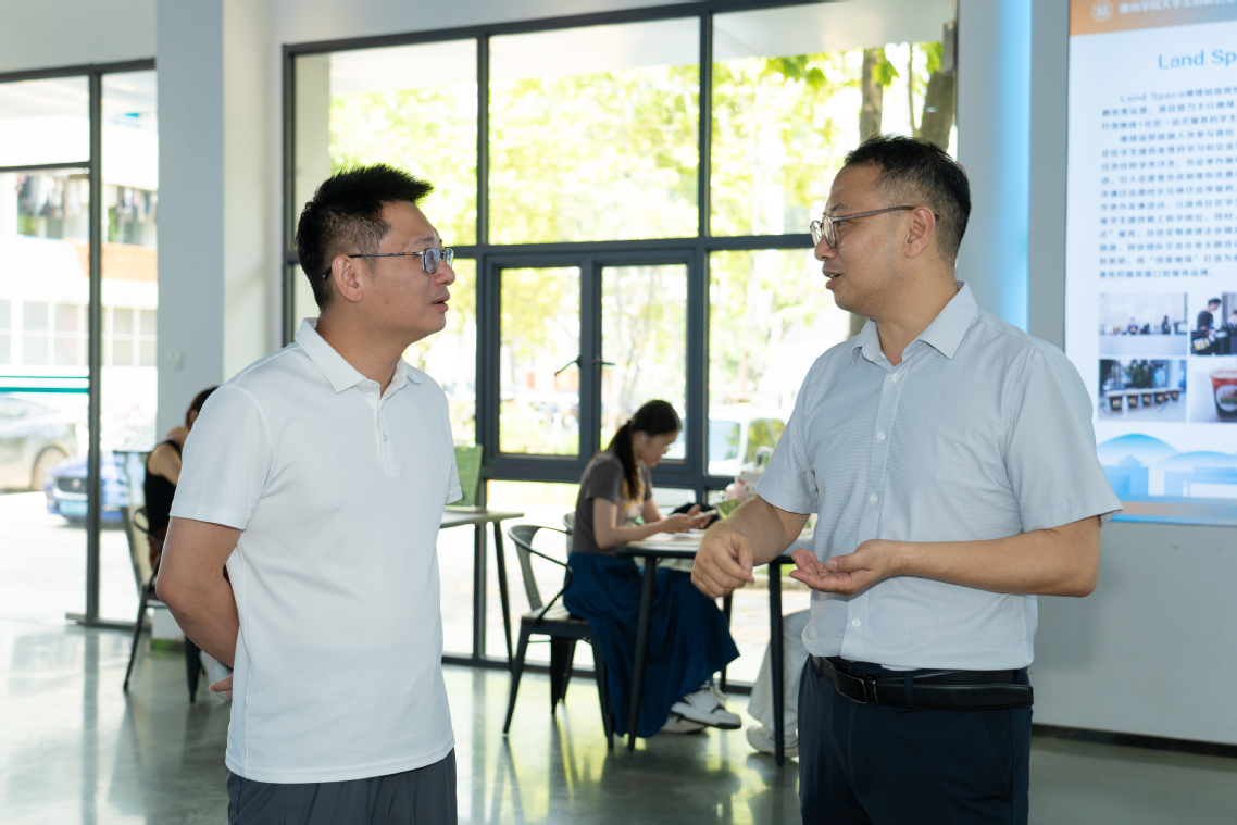 随后,黄凯珊一行参观了我校大学生创新创业(孵化)基地,并对我校创新创业团队的参赛项目进行详细交流指导。黄凯珊对我校孵化基地的运营模式、项目培育机制及学生团队的创新能力表示赞赏,同时提出了宝贵的建议。