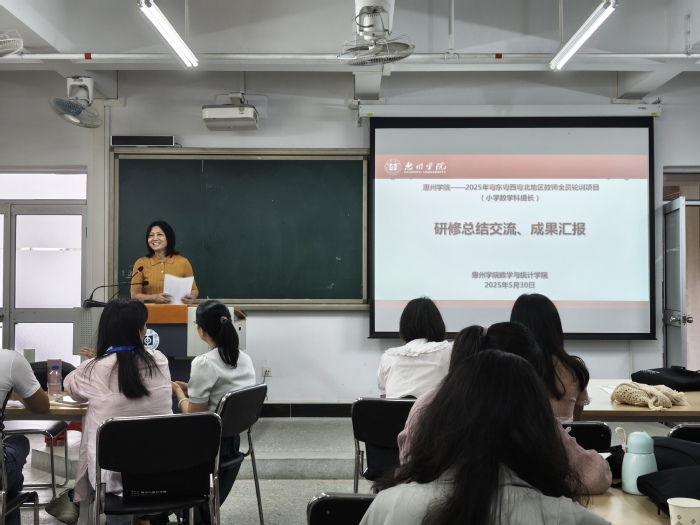 本网讯 5月30日,我院在旭日328会议室举行2025年粤东西北地区教师全员轮训暨小学数学学科组长培训研修总结会。活动由项目管理团队成员、数学与统计学院党委副书记陈海容主持。项目管理团队成员与全体学员齐聚一堂,在交流、回顾、总结中巩固学习成果。