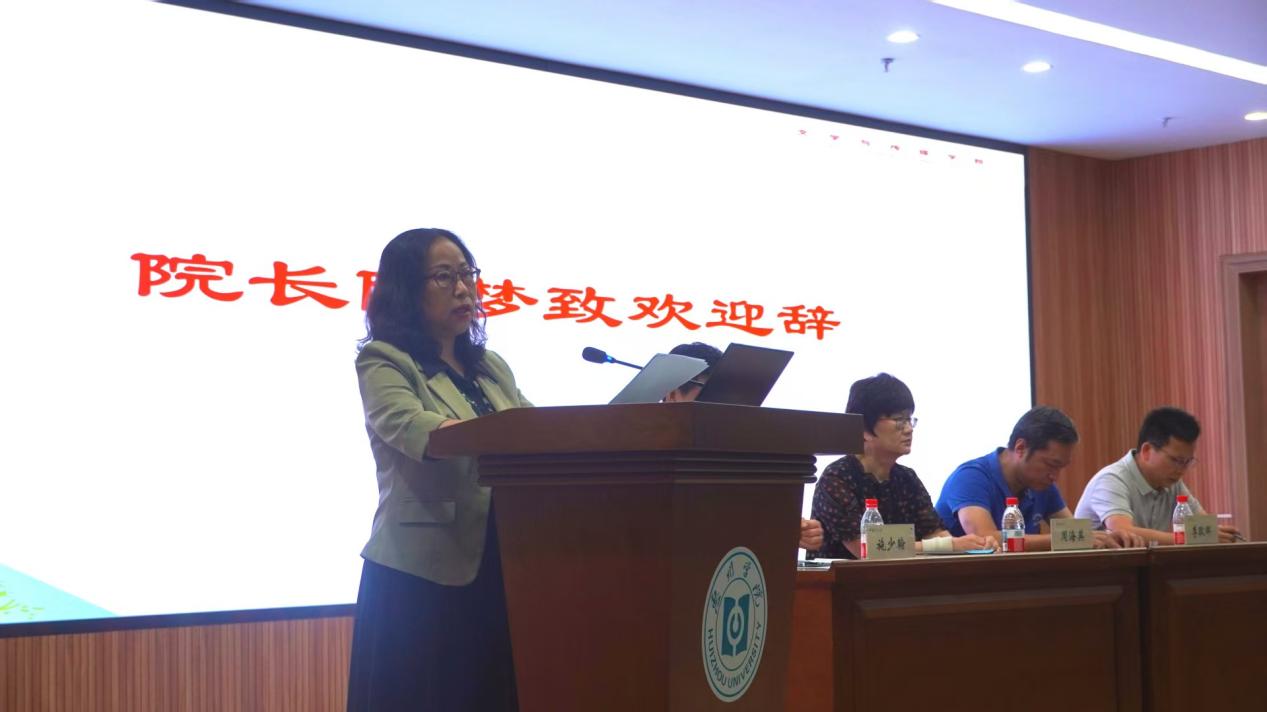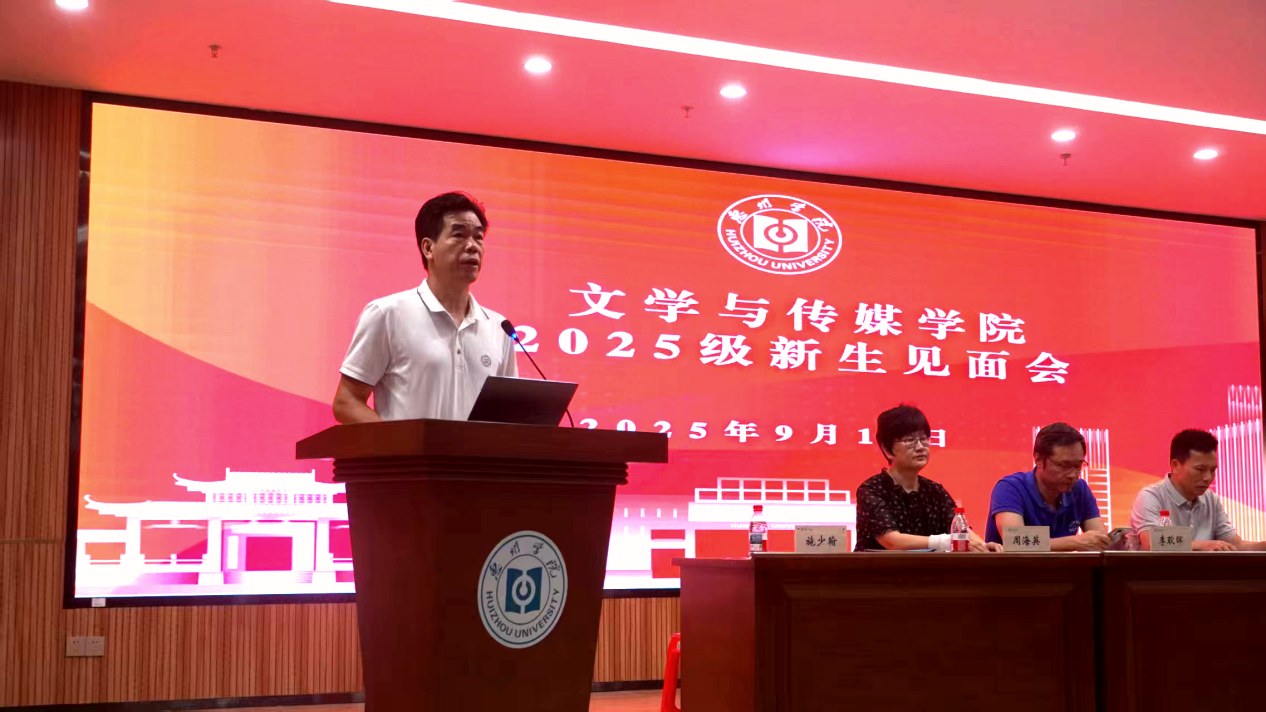 在庄重热烈的氛围中,院长陈梦首先致欢迎辞。她系统介绍了文学与传媒学院的发展历程、办学特色和育人成就,重点展示了学院优质的师资队伍和完善的教学条件。陈梦院长对新生提出四点期望:一要扎根传统、面向未来,在传承中创新,在创新中发展;二要潜心思考、勇于实践,尽快转变学习方式和思维模式;三要涵养情怀、担当使命,坚守人文理想,传播时代强音;四要善于沟通、精诚合作,建立和谐融洽的同窗情谊。