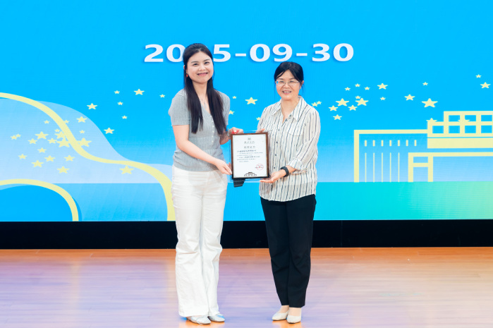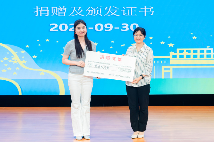 仪式上,魏晓慧代表学校接受捐赠支票,并向陈茵颁发捐赠证书。