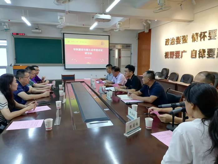 副院长罗泽荣翔实汇报了近五年来马克思主义学院课题申报、学术论文发表和专著出版等科研工作情况,比对与硕士点申报相关的各项指标数据对标情况,客观分析了学院现有优势与特色以及存在的短板与不足。曾鹰教授、李光副教授分别就聚焦“马克思主义理论”和“中共党史党建学”一级学科硕士点申报准备情况进行了专门汇报。
