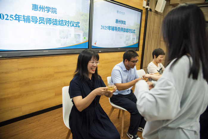 在“师徒结对仪式”中,三位新进辅导员真诚地向职业成长导师敬茶,以传统“敬茶礼”表达尊师重道之情。导师们则回赠《高校辅导员七项修炼手册》,勉励后辈精进专业、提升能力。