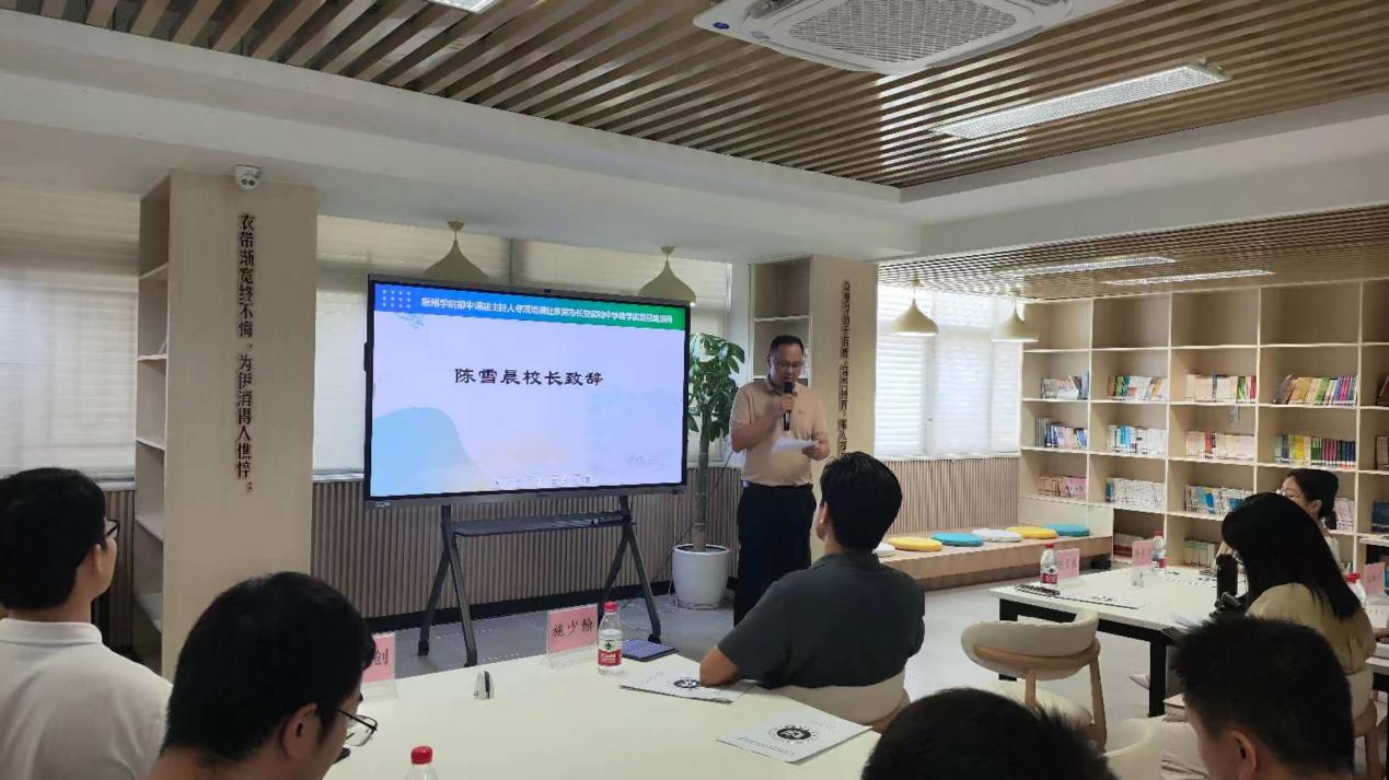 仪式伊始,陈雪晨发表致辞。他首先对远道而来的参训教师表示热烈欢迎,并详细介绍了长安实验中学的办学特色、发展历程及在课题研究与教育教学融合方面的实践成果。陈校长提到,学校始终将课题研究作为推动教师专业成长、提升教育教学质量的核心抓手,近年来在初中各学科课题立项、成果转化等方面均取得显著成效。此次承接跟岗培训任务,学校将充分开放优质教学资源、课题研究案例及教师成长平台,安排经验丰富的课题指导教师与参训学员结对交流,助力学员在实践中深化对课题研究的认知,提升课题设计与实施能力。同时,他也期待参训教师能将粤东西北地区的教育实践经验带入校园,形成双向学习、共同进步的良好氛围。