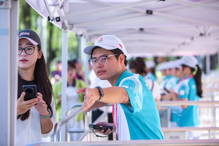 在观众检票岗位,党员志愿者严格落实“一票一证、实名观赛”要求,手持核验设备高效核查观众身份信息,引导观众有序入场。赛事开场高峰期,他们默契配合维持秩序,全程无拥堵、无错检,为观赛体验筑牢第一道防线。