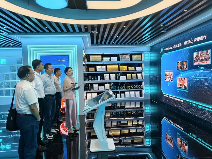 深圳市东信时代信息技术有限公司监事会主席、副总裁刘水良对我校一行的到来表示热烈欢迎。他带领王胜一行共同参观了公司展厅,全面介绍了东信集团的发展历程、企业规模、核心产品、企业团队及发展方向。在座谈会上,刘水良详细介绍了东信时代的未来发展方向,他表示,我校人才培养成果突出,希望接下来双方能够进一步深化合作,共同为培养符合时代需求的高素质应用型人才贡献力量。营赛洞见大模型产品负责人张晏铭、事业部总经理林佳烽(2021届软件工程专业校友)分别介绍了营赛洞见AI大模型产品、东信时代校企合作以及引进人才的需求。