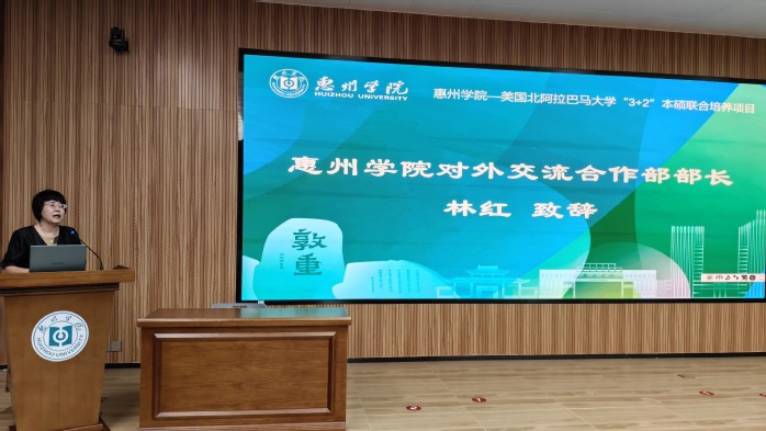 会议伊始,林红致辞,她对美国北阿拉巴马大学一行来访交流表示热烈欢迎。她指出,在惠州学院与北阿拉巴马大学前期共同精心筹划下,“3+2”本硕联合培养项目顺利开展,招生工作成绩喜人,得到各方好评,希望双方进一步加强协同联动,全力推进项目的后续实施,培养出更多具有国际化视野的高素质复合型应用型财管人才。