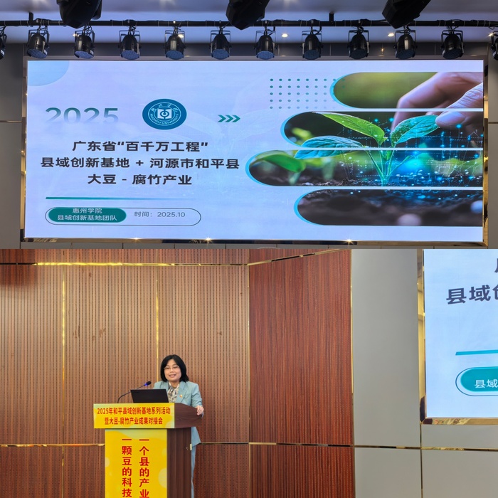 当日上午,“2025年和平县域创新基地系列活动暨大豆-腐竹产业成果对接会”在和平县深和中心二楼会议厅成功举行。会议以“豆香智链·产业兴县”为主题,全面展示了大豆-腐竹产业链的创新成果,标志着校地合作推动县域产业振兴步入体系化、深层次的新阶段。
