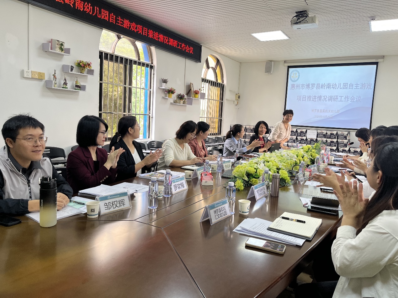 本网讯 为深入推进学前教育改革,探索“以幼儿为本”的教育实践路径,10月29日上午,惠州市博罗县岭南幼儿园自主游戏项目推进调研指导会在博罗县直属机关幼儿园顺利召开。本次会议汇聚我校教育科学学院、惠州市教育科学研究院、惠州市机关幼儿园的专家领导,以及全县多所试点幼儿园的园长与项目负责人,通过大学(U)-政府(G)-幼儿园(K)三方协同模式,总结项目阶段性成果、梳理实践难点、共商推进策略,为惠州市学前教育高质量发展注入强劲动力。