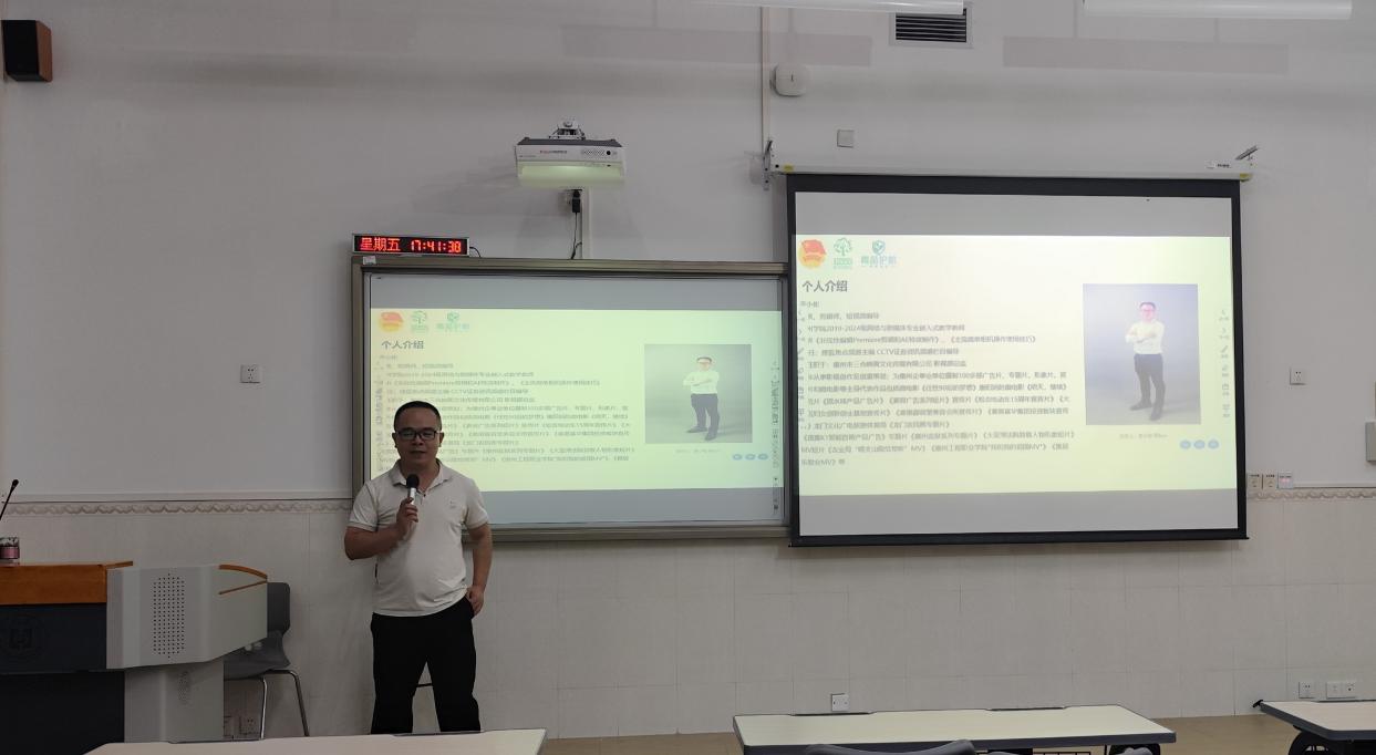 据悉,主讲人李小彬为我校2011届校友,具备丰富的行业经历。他曾担任搜狐焦点频道惠州站主编、CCTV证券资讯频道栏目编导,为多家惠州企事业单位摄制宣传片、广告片及专题片,并承接中国教育电视台《法治天下》节目的后期包装任务,在视频策划、拍摄与剪辑等领域积累了深厚的实战经验。
