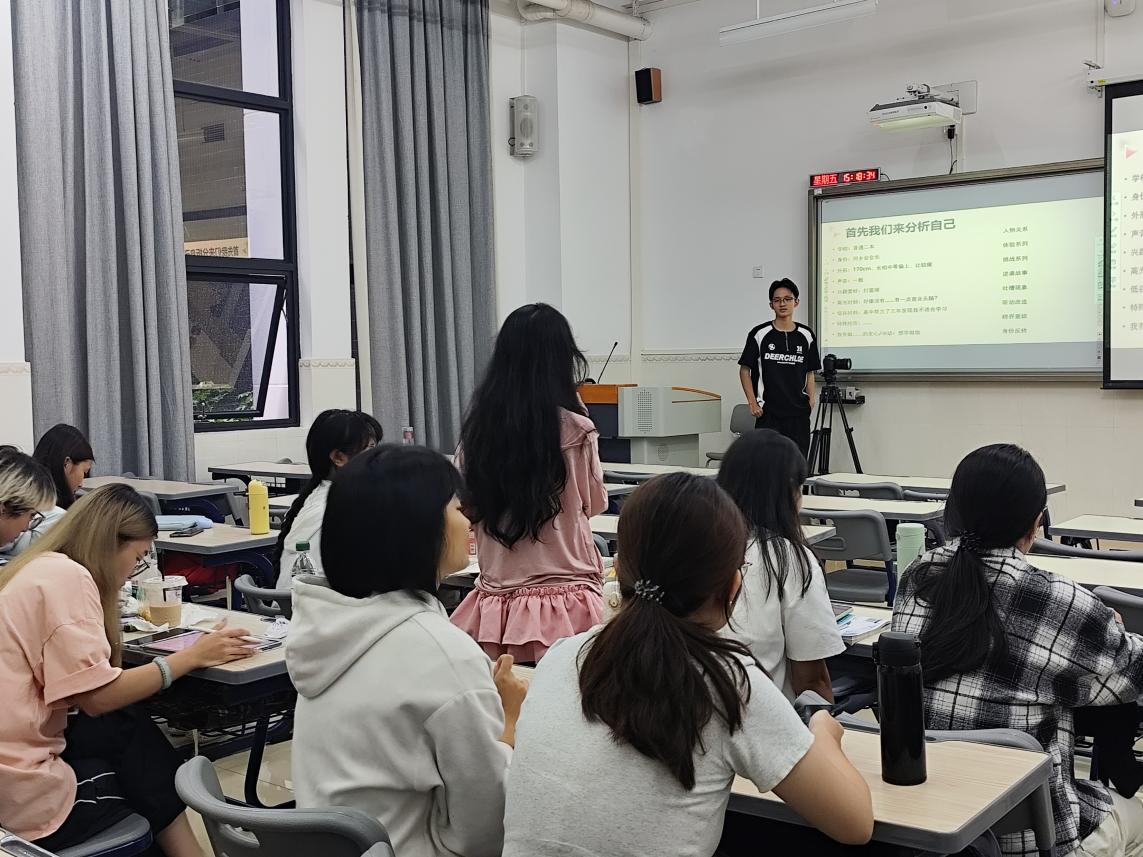 活动中,李小彬还特邀连续创业三年、和君商学院成员陈泰宏老师,带来以“大学生如何落地做自媒体账号”为题的专题分享。陈泰宏以“自我剖析—内容创作—瓶颈突破”为主线,引导学生从社会角色与内在兴趣两个维度进行自我梳理,启发大家挖掘贴近校园生活、易于引发同龄共鸣的创作题材。