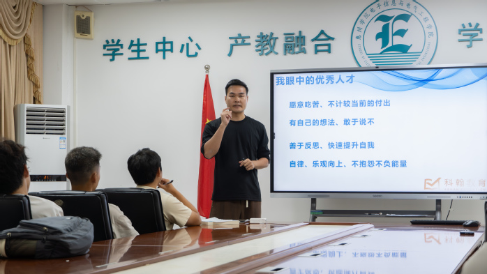 本网讯 为深化产教融合,助力学生明确职业方向、规划发展路径,10月29日,电子信息与电气工程学院特邀惠州科瀚教育总经理劳帅担任主讲嘉宾,为百余名师生带来一场内容丰富、富有启发性的职业规划指导课。劳帅结合自身创业经历与行业观察,使整场讲座兼具实战指导与思维启迪。
