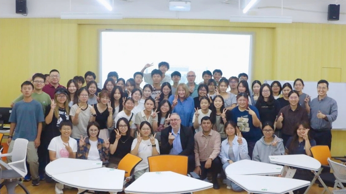 本网讯 10月30日晚,在旭日科技楼B座308、502和503课室,惠州学院2025级财务管理(中外联合)专业同学与惠州学院多名外籍教师、美国北阿拉巴马大学教师开展一场别开生面的英语沙龙活动。本次活动由惠州学院对外交流合作部、经济管理学院联合主办,对外交流合作部林红部长、经济管理学院李普亮院长、对外交流合作部张国辰副部长、教育科学学院中外合作办学项目协调员杨旻华老师,25财管3班班主任袁祥勇老师、4班班主任杨阳老师出席本次活动,活动由陈维嘉老师主持。