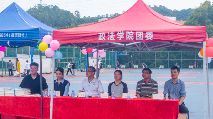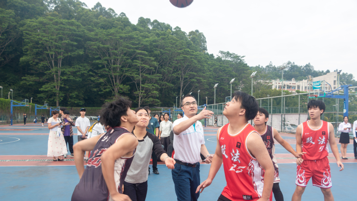 本网讯 10月29日,政法学院第三十六届“金秋”系列活动之班级篮球赛在中苑篮球场正式开幕。学院党委书记曾蔚阳、党委副书记刘华,辅导员许华本,厚大教育嘉宾廖娜、李敏诗、陈宇行及政法学院学生共同参与活动。