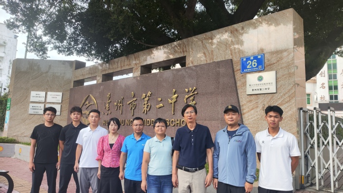 本网讯 为精准掌握教育实习动态、扎实推进师范专业认证筹备工作,10月31日,体育学院院长张宗国带队赴惠州市第二中学,开展教育实习中期检查工作,并召开师范专业认证专家进校迎检座谈会。副院长李铁、院党委副书记古爱琼,教务部实践科科长郑蒙,体育教育系主任段斌、副主任向宇豪陪同前往。