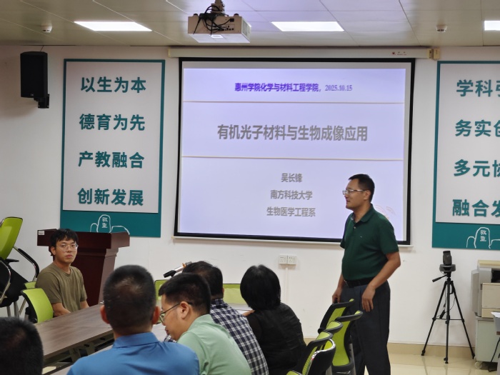 本次报告会邀请南方科技大学吴长锋教授、李浩教授、谢凯平博士、郑云博士作为主讲嘉宾。吴长锋以《有机光子材料与生物成像应用》为题,系统介绍了有机光子材料的性能特点及其在生物成像中的实际应用;李浩围绕《可见光响应氨硼烷脱氢催化剂的设计合成及光增效机制》,深入阐释了催化剂的设计思路与光增效机制的研究进展;谢凯平以《自旋交叉金属-有机框架材料的客体调控及有机-无机杂化多铁材料》为题,详细讲解了材料的客体调控方法及杂化多铁材料的研究成果;郑云则分享了《预锂化硅基负极的界面工程策略》,展示了其在硅基负极界面工程方面的创新研究与学术潜力。四位博士的报告内容翔实、逻辑清晰,既有理论深度,也有实践分析,展现了学院青年科研人才的学术活力与发展后劲。