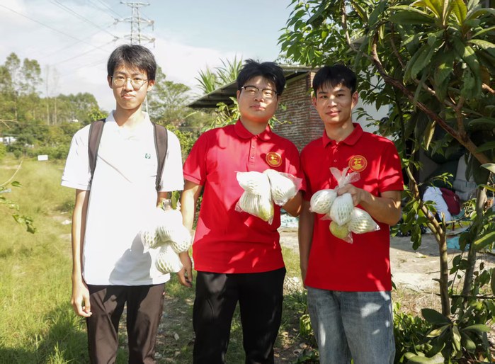 在芭乐果园,技术员详细讲解套袋重要性和操作步骤,师生们学习芭乐套袋技巧,为芭乐树上的果实套上保护袋,细心呵护果实成长。紧接着,大家参与芭乐采摘,欣赏着一串串饱满的芭乐,齐心协力将果实采摘下来,装入篮中,感受收获的喜悦。